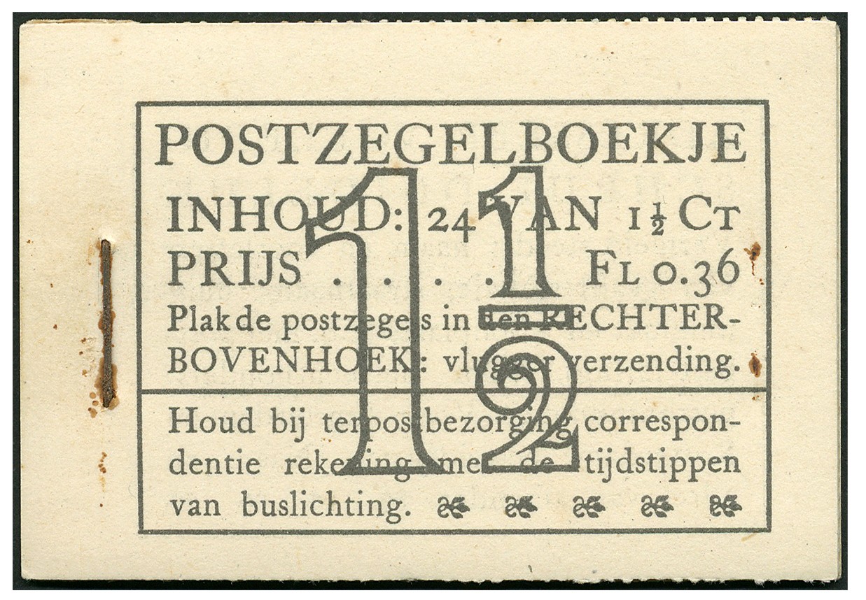 PZ22d, boekje met 4 maal 6 zegels 1½ cent grijs, beh. 'n enkel roestvlekje van het nietje een prachtex. € 135