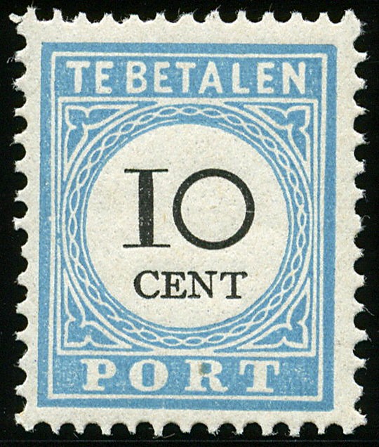 7BIII, 10 cent lichtblauw en zwart, Kt. 12½ x 12, type III, postfris prachtex. met in papier, als gebruikelijk, enkele minieme zwarte originele puntjes, attest Vleeming (2017) € 1200