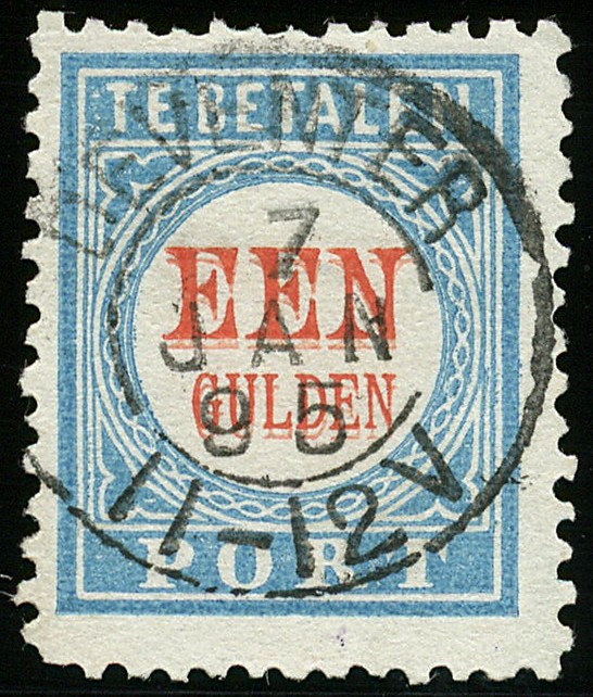 12BI, een gulden met variëteit ´EEN GULDEN dubbel gedrukt´, gebr. prachtex. met afst. Deventer 7-1-1895. Zie: HPN I2-45/46, afb. 64