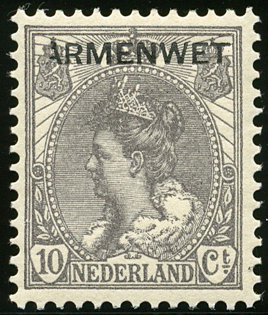 7, 10 cent Armenwet met opdrukvariëteit ´Gedeeltelijke A´ (linker been ontbreekt), postfris prachtex. Cert. ´NVPH, 1998´