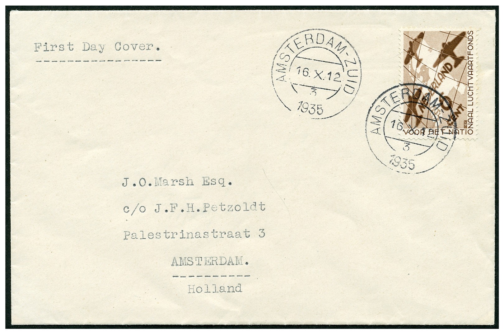 278, 6 cent Luchtvaartfonds op zeer fris couvert met open klep, met eerste dag-afstempeling Amsterdam-Zuid 16-10-1935. € 240