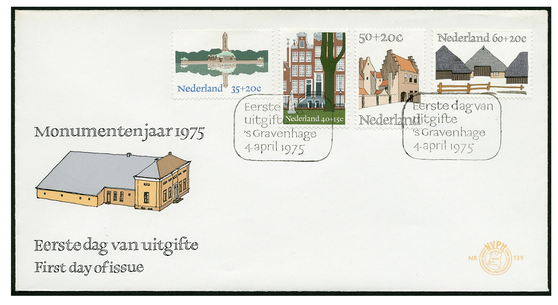 E139, Zomer 1975 waarop de 50 cent met plaatfout ´Gebroken raam´ nr. 1070P. Zelden op FDC aangetroffen! € 300+