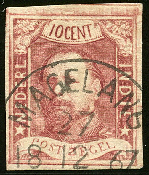 1, 10 cent wijnrood, gebruikt prachtex. met mooie afstempeling Magelang. € 125