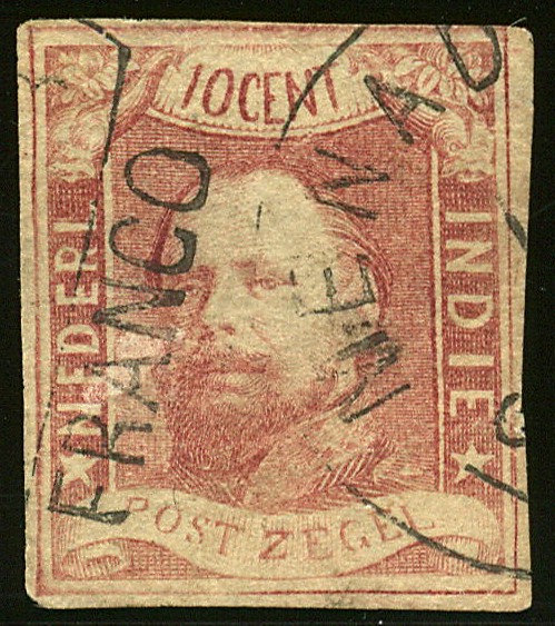 1, 10 Cent wijnrood, vrijwel prachtex. met halfrond-franco Menado. € 125