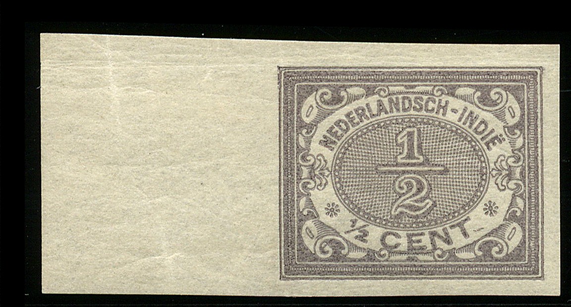 PC.42a/h, ½ Cent type Vürtheim, uitgifte 1902, kleurproeven van de kleuren die voor de uitgegeven waarden zijn gekozen, ongetande randstukken, gegomd, prachtex. (42f = ultramarijn, lichte oppervlaktebeschadiging). Weinig aangeboden! fl. 800.