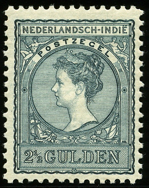 58A/61A, 1 en 2½ gulden op gewoon en op blauw papier, Lt. 11, ongebr. prachtex., nr.59A met cert. Ned. Bond (2003) € 1450