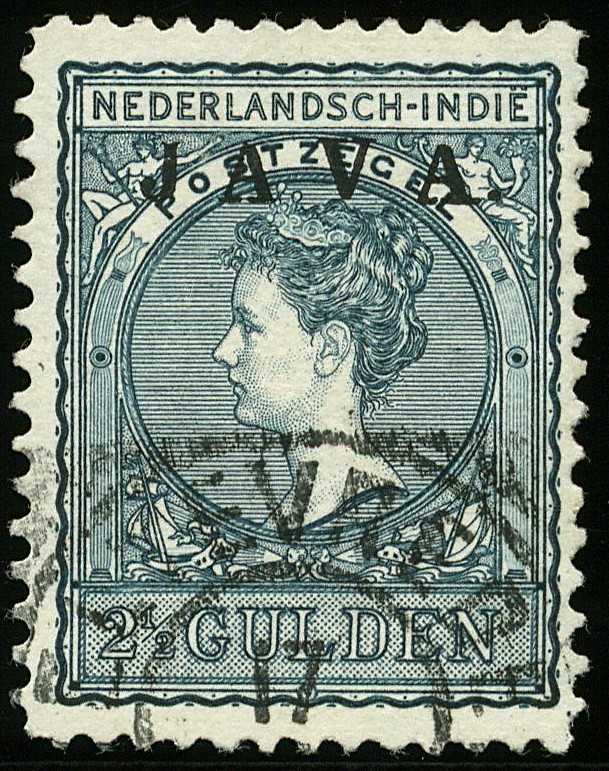 80a, 2½ gld. zwartblauw met opdruk Java hoogstaand, gebruikt prachtstuk met cert. NVPH (1958) en Vleeming (2013), gebruikt een zeldzaam zegel! € 5500