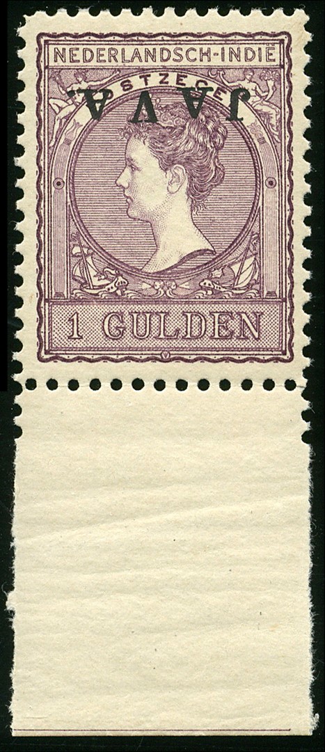 79f, 1 gld. doflila met opdruk Java kopstaand, postfris onderrandstuk met certificaat Vleeming (2015) € 450