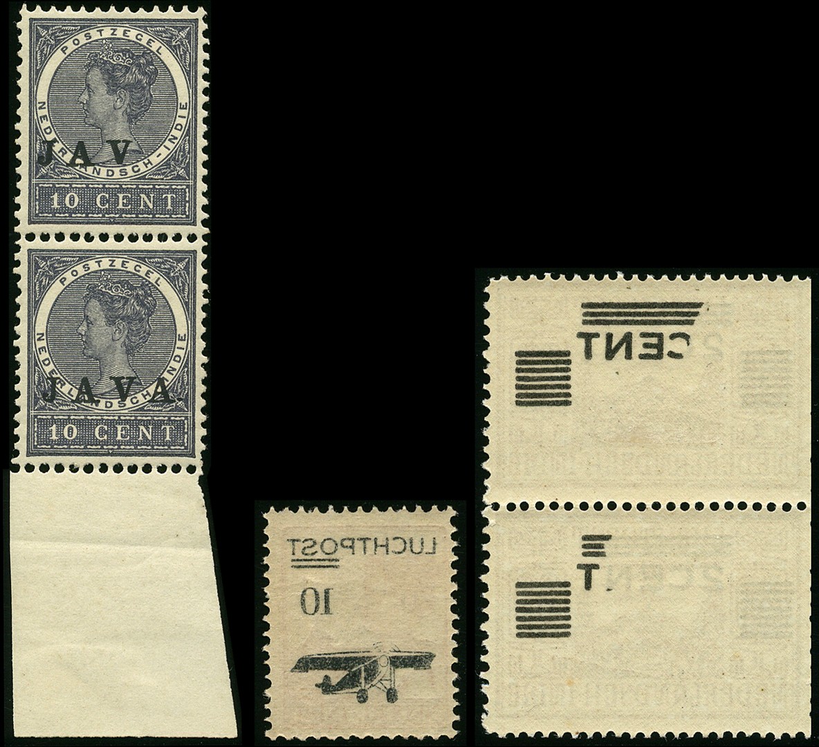 70fa, ongebruikt prachtex. in randpaar met nr. 70, alsmede spiegelopdrukken van postfrisse nrs. 171 in blok van vier, 212 (3x waarvan 1x met gedeeltelijke spiegelopdruk) en LP1