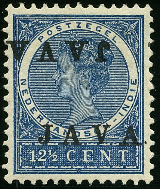 71fc, 12½ Cent Veth met variëteit ´Opdruk JAVA. dubbel, waarvan één kopstaand´, ongebruikt vrijwel prachtex. Fotokopie cert. ´NVPH, 1965´. € 175