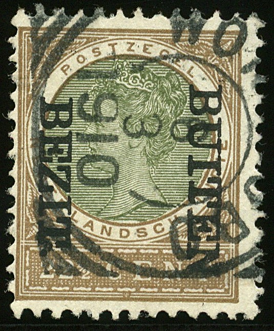 93f, 22½ cent bruin en olijfgroen met kopstaande opdruk Buiten Bezit, gebruikt prachtex. met cert. NVPH (2007) € 3500