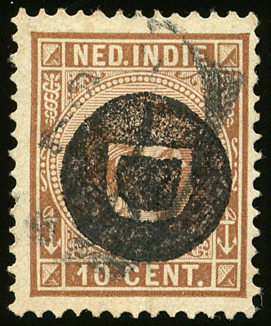 Dienst 1hf, 10 cent roodbruin, met handstempel-opdruk dwars geplaatst, gebruikt prachtex. € 400