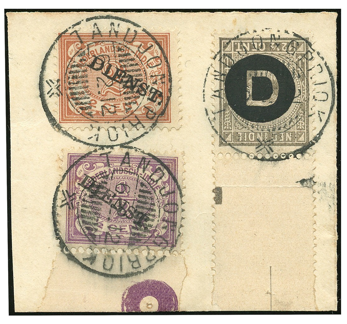 Dienst 2f, 12½ ct. grijs met kopstaande opdruk, gebruikt pracht-randstuk op briefstukje met nrs.D9 en D11, cert. NVPH (1966) € 350+