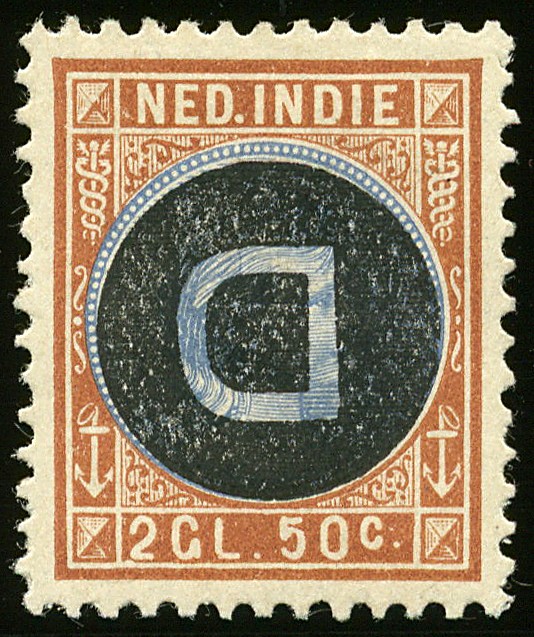 Dienst 7f, 2½ gulden oranjebruin en blauw met kopstaande opdruk, ongebruikt prachtex. met cert. Moeijes (1992) € 750