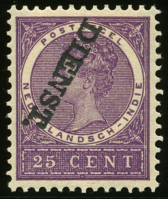 Dienst 23f, 25 cent violet met kopstaande opdruk, ongebruikt prachtex. met cert. NVPH (1948) en NKD (2019) € 1750