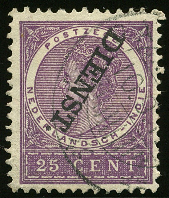 Dienst 23f, 25 cent violet met kopstaande opdruk, gebruikt prachtex. met certificaat NVPH (1951) € 1750