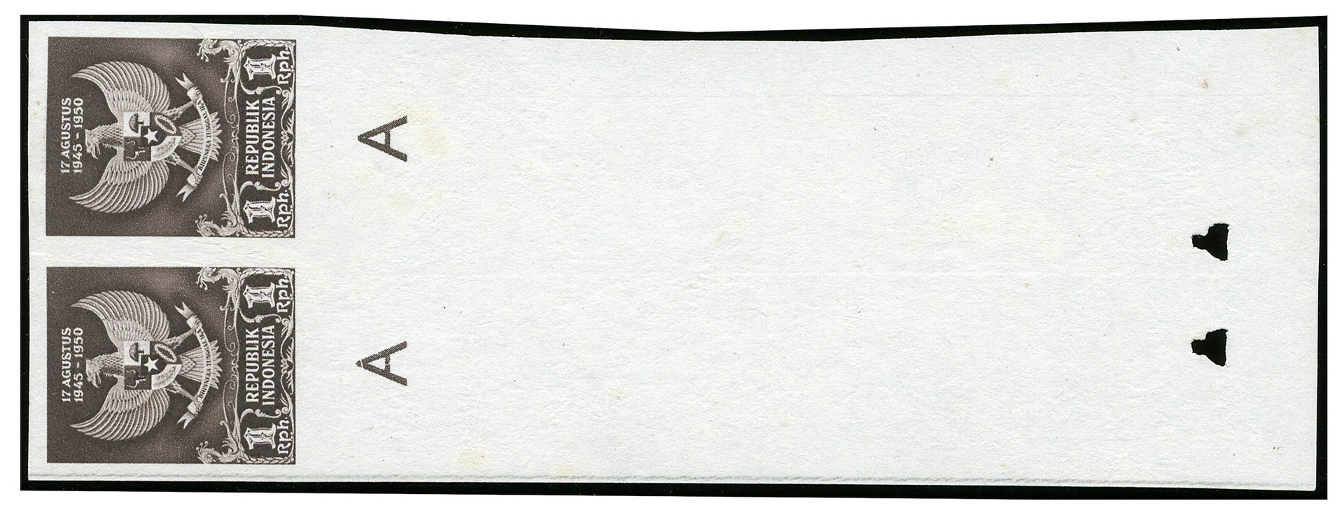 KPI.64A/66A, 5 Jaar Proklamasi Republik Indonesia 1950, ongetand en ongegomd, prachtparen waarvan 15s en 1Rp met velrand. Schaars! Rp. 60.000.000