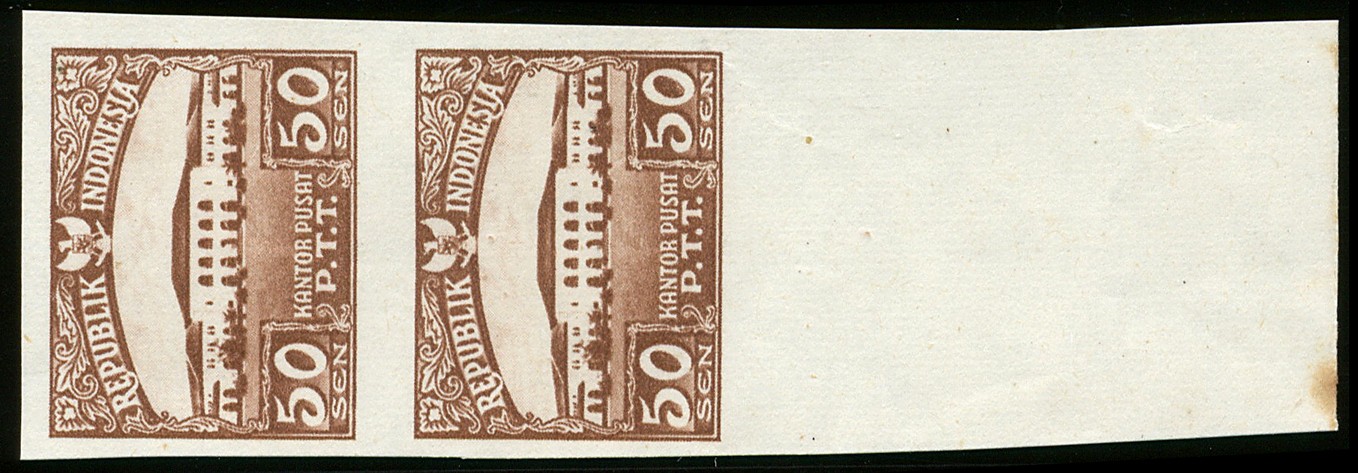 KPI.107A/111A, Hoofdpostkantoor Bandoeng 1953, ongetand en ongegomd, verticale randparen. Rp. 2.000.000