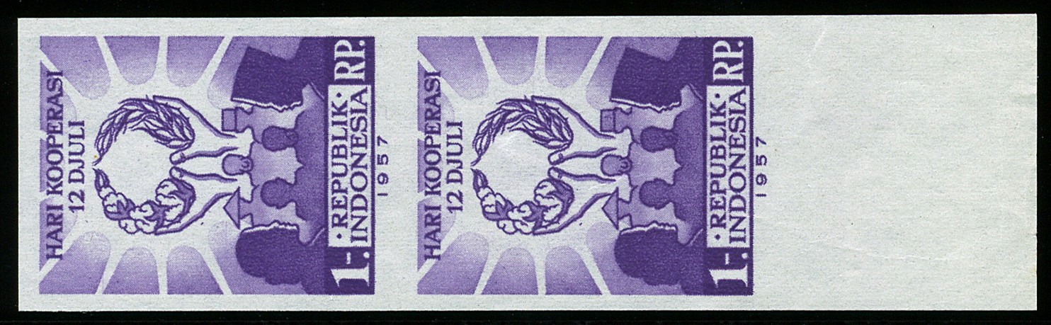 KPI.179A/184A, Indonesische Rode Kruis 1956 en KPI.200A/203A, Dag van de Samenwerking 1957, ongetande en ongegomde prachtparen. Rp. 26.000.000