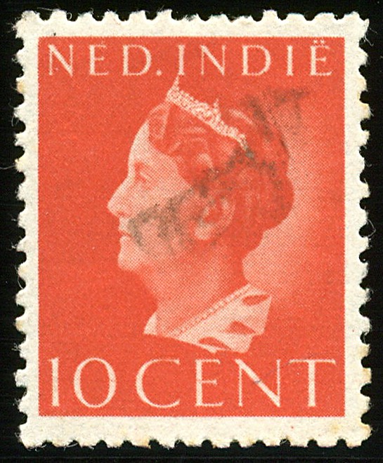 Sumatra. Benkoelen. 10 Cent van Konijnenburg with monogram overprint of postmaster Rosali in black, used locally in Liwa, no. 382z-43bk, unused. A very rare stamp! Cert. ´Van Dieten, 2019´. € 750