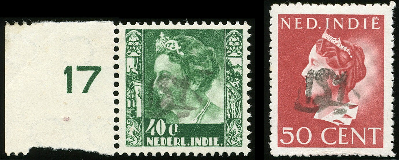 Sumatra. Palembang. Monogram overprint SLM of postmaster Salim in black, used locally in Saroelangoenrawas, on 20, 25, 35 and 40 cent Kreisler, 10, 15, 30, 50 and 80 cent and 1 gulden Van Konijnenburg and 30 cent postage due, nos. 533z-27b, 28a, 31b, 32b, 43bk, 44, 48, 51k, 53k, 54k and 86b, all unused. Some signed Boekema. € 615