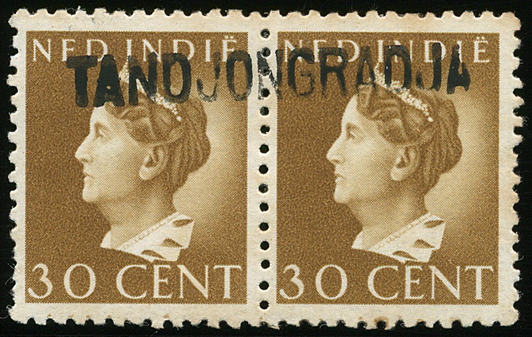Sumatra. Palembang. Place-name overprint TANDJONGRADJA covering two stamps in horizontal pair in black on 30 cent Van Konijnenburg no. 547z-48. € 300