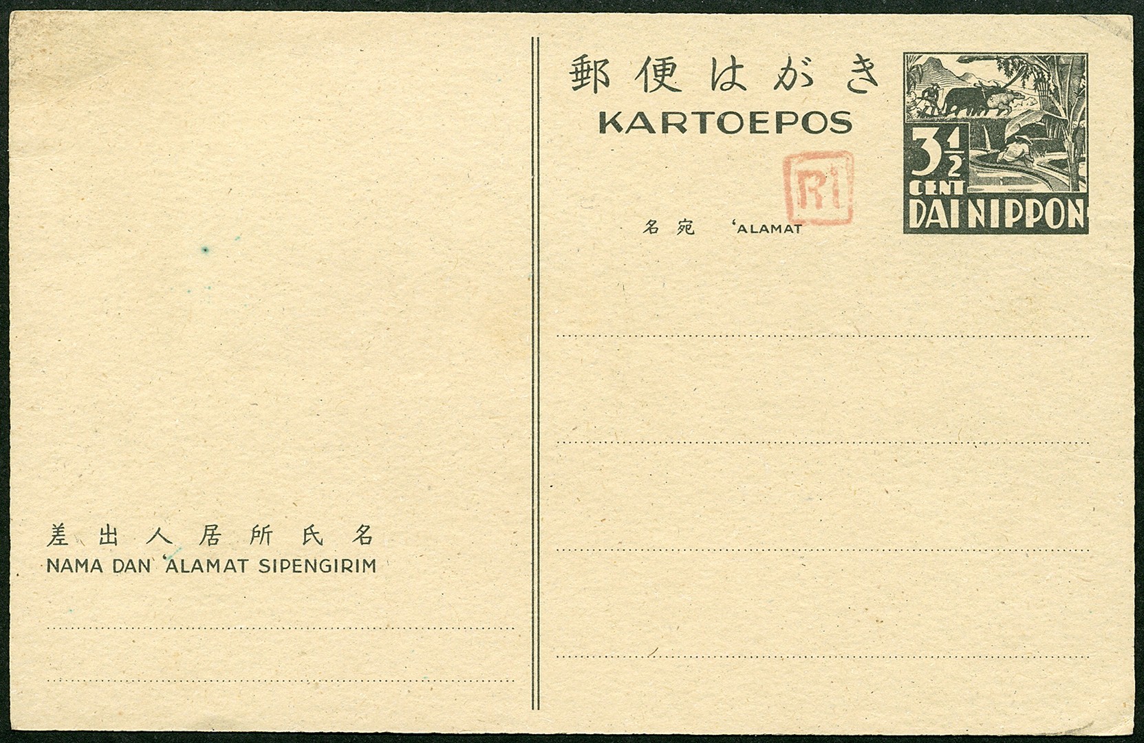 Republik. Sumatra. 3½ Cent postcard with red RI overprint in square frame similar to Bu.RS33 (RRR), unused