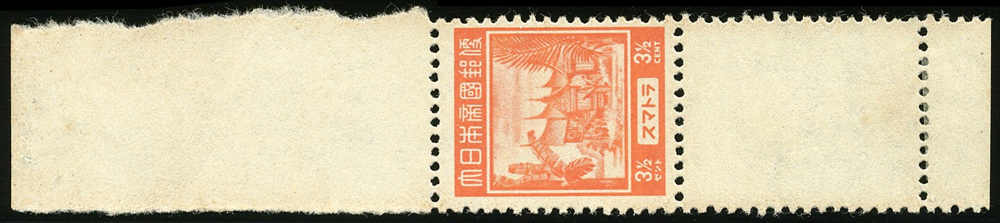 Sumatra. Definitive issue. Perforated colour proof 3½ cent orange, taken from the mini sheet of 10 stamps with large upper and lower margins no. 04pbd