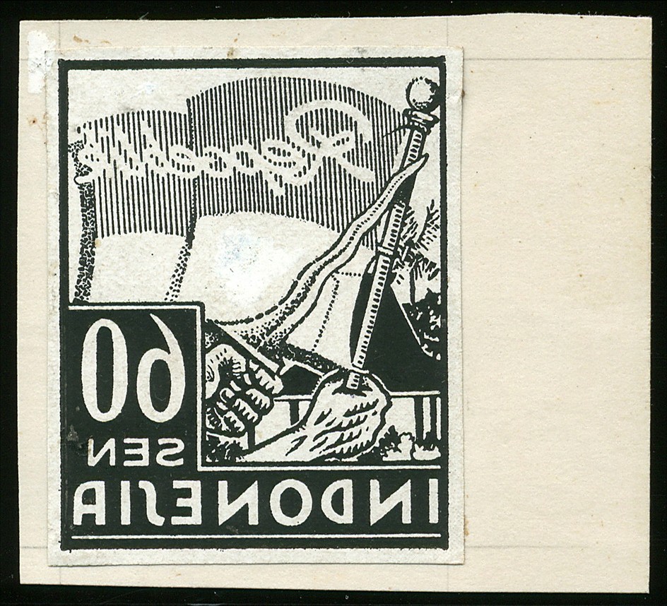 Java. Design. 042Asp, Die proof printed in mirror image of 60s in black, affixed on piece of cardboard. Rarely offered. € 350