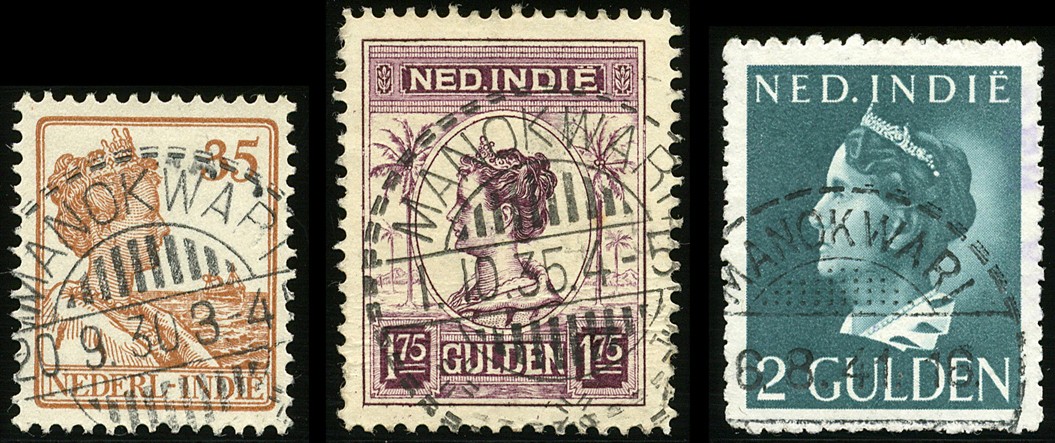 MANOKWARI, langebalk op nrs. 127, 133 en Missie 244, puntvlakvulling PV1 op 196 (bruin tandje) en PV2 op 286