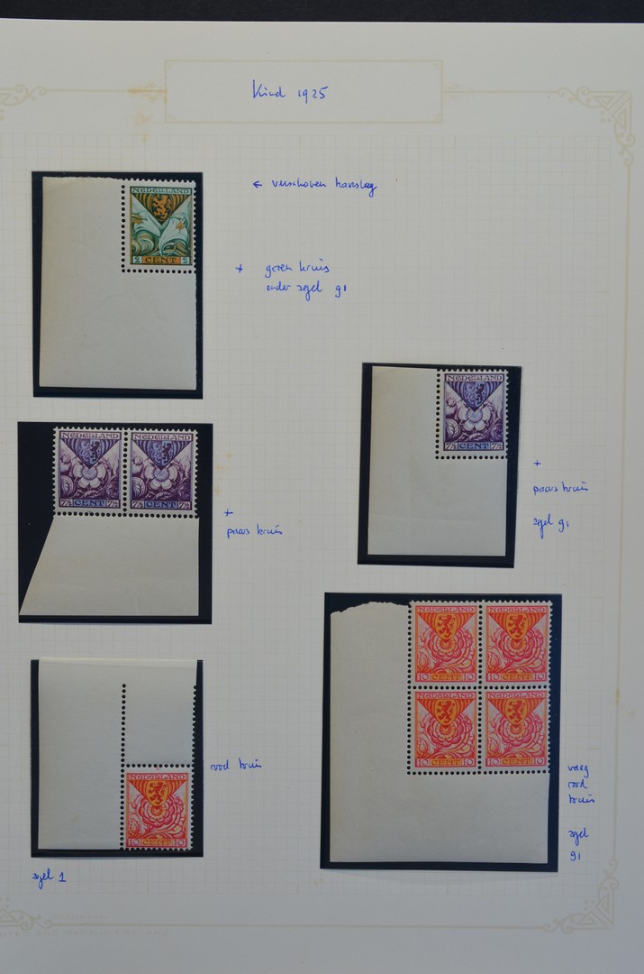Kinderzegels 1925 en 1927, kleine, vnl. postfrisse speciaalcollectie met hoekstukken, paskruizen, etc. waarbij roltanding