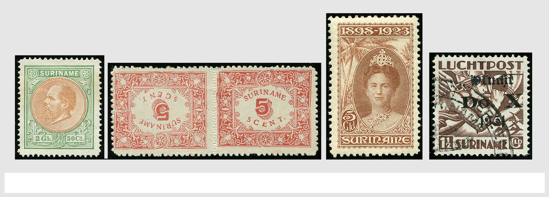 SURINAME 1873-1975, o/* verzameling op albumbladen waarbij nr.15, 104/10 en Do.X-serie