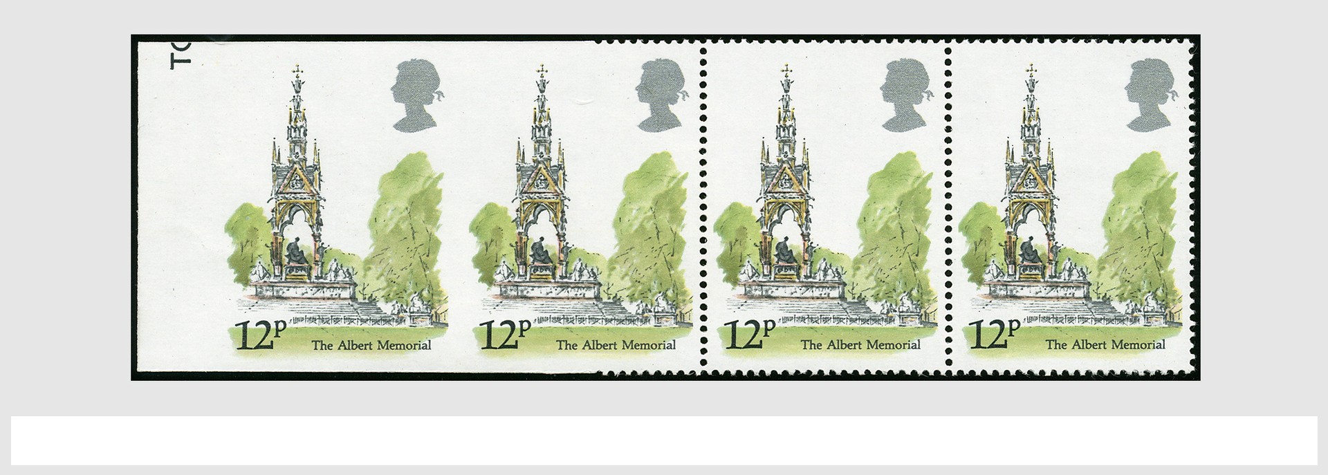 ENGELAND, S.G. 1121a, marginal strip of four with 1½ stamp imperforated, VF unmounted mint, £ 4000,-