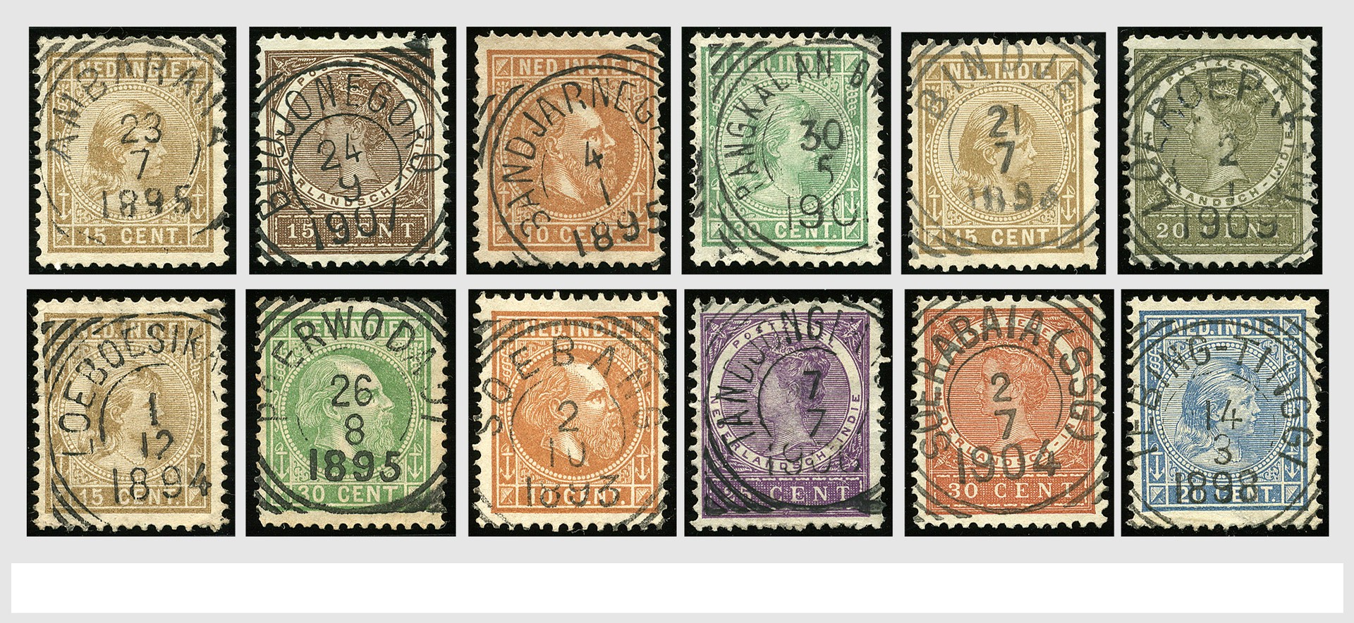 NED.- INDIË POSTHISTORIE, mooie collectie vierkantstempels van A t/m W op losse zegels w.o. zegels op knipsels, keurig gerangschikt op alfabetische volgorde, met typen en veel volledige afstempelingen, w.o. schaarse, in insteekboek. Prima collectie om dit verzamelgebied op te starten!