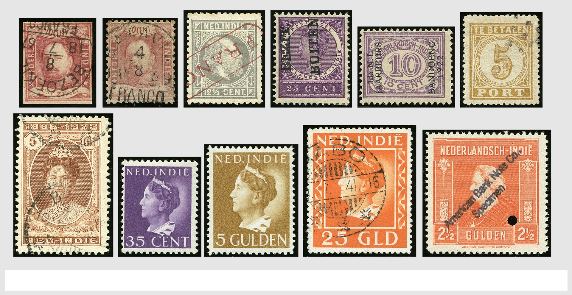 NED.- INDIË 1864-1948, hoofdzakelijk gebruikte op typen, tandingen, kleurnuances en wat variëteiten gespecialiseerde verzameling met Specimen, dubbele, kopstaande en verschoven opdrukken, Jaarbeurs Bandoeng ongebruikt en gebruikt, enkele ex. uit de Stockholmserie, Luchtpost, Port w.o. 1/4 incl. Specimen en zegels met tussenstrook, Dienst, Japanse bezetting, Ned. Nieuw-Guinea incl. UNTEA, etc. alles keurig opgezet en beschreven op Davo-bladen in 2 ringbanden