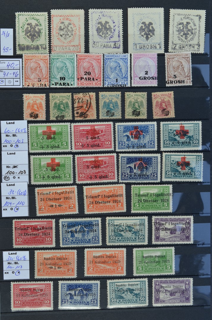 ALBANIË 1913-2009, ongebr. resp. postfrisse verzameling, waarbij vele goede uitgiften, opdrukseries, ongetande uitg., goede blokken, etc. Mooi collectie met zeer hoge cataloguswaarde in 2 dikke insteekboeken