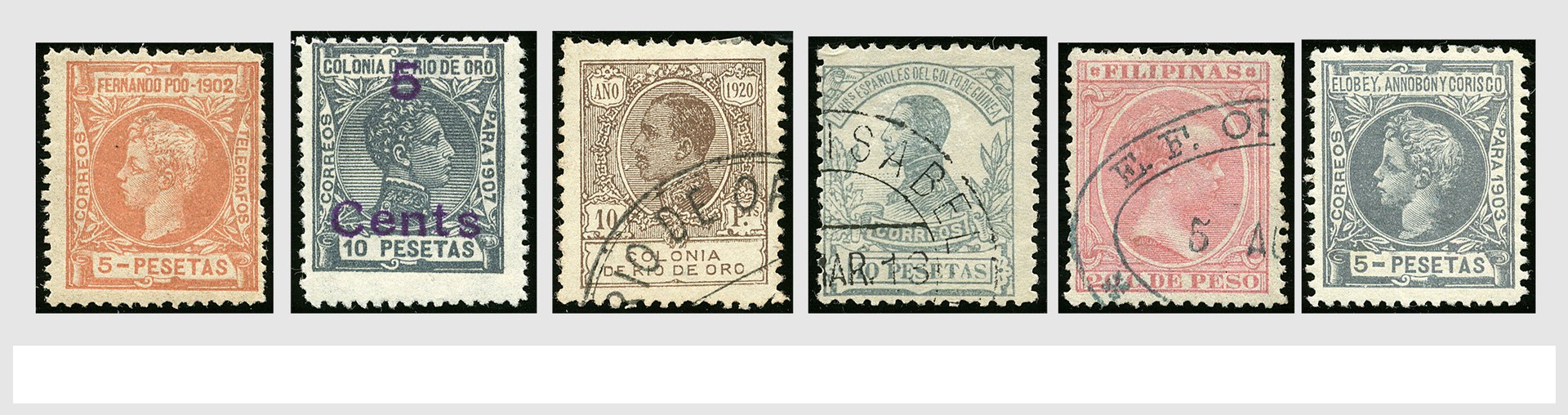 SPAANSE KOLONIËN, o/* verzameling met variëteiten en doubletten van dit niet vaak aangeboden gebied, met diverse aardige nrs., in oud insteekboek