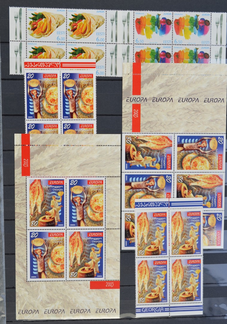 VERENIGD EUROPA CEPT 2000 t/m 2005, postfrisse voorraad wb. blokken van vier en siervellen. Cat.wrd. vlgs. inz. € 7350