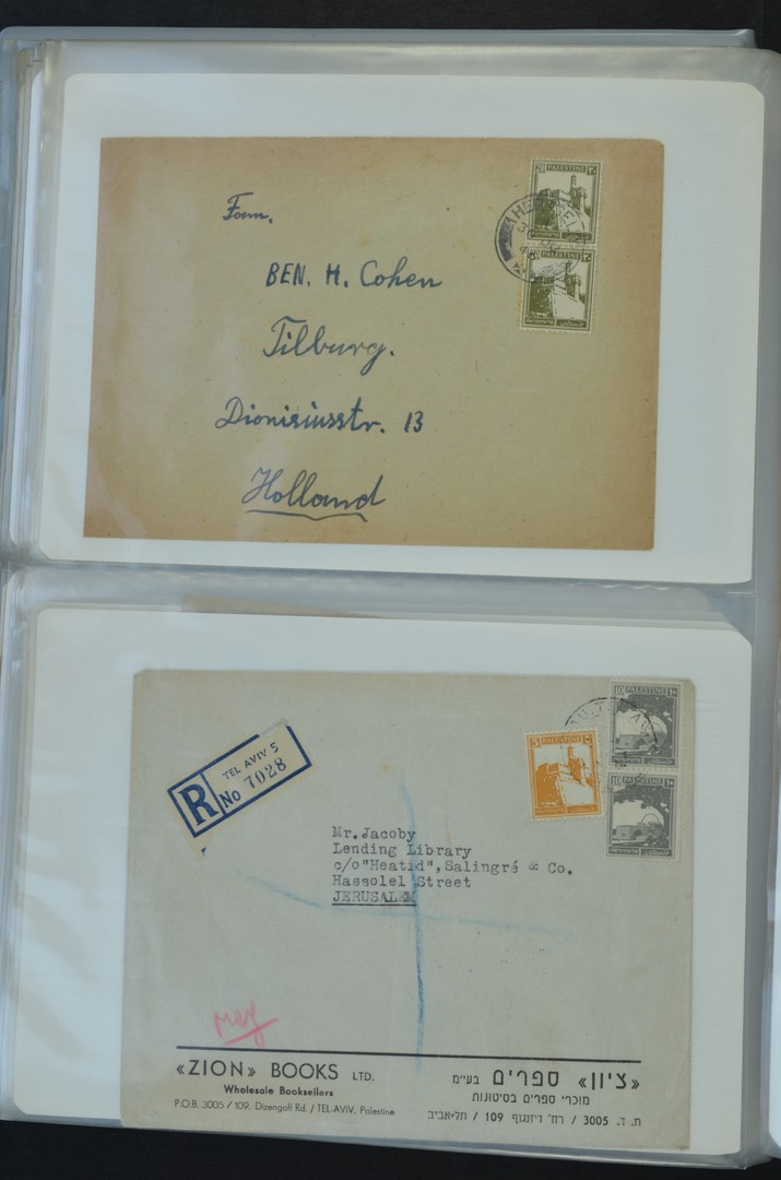 PALESTINA POSTHISTORIE, ruim 125 poststukken jaren ´30-´40 w.o. frankeringen, stempels, aangetekend, bestemmingen (o.a. Iran, Argentinië, Nederland), censuur, etc.