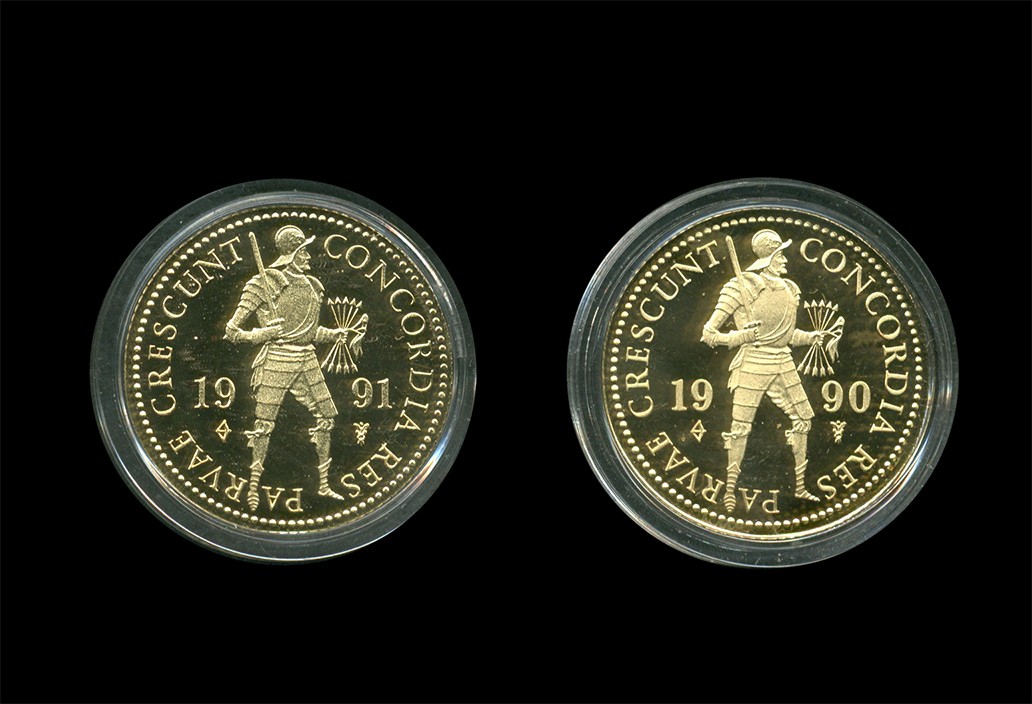 NEDERLAND, 1 gouden Ducaat 1990 en 1 gouden Ducaat 1991, in cassette