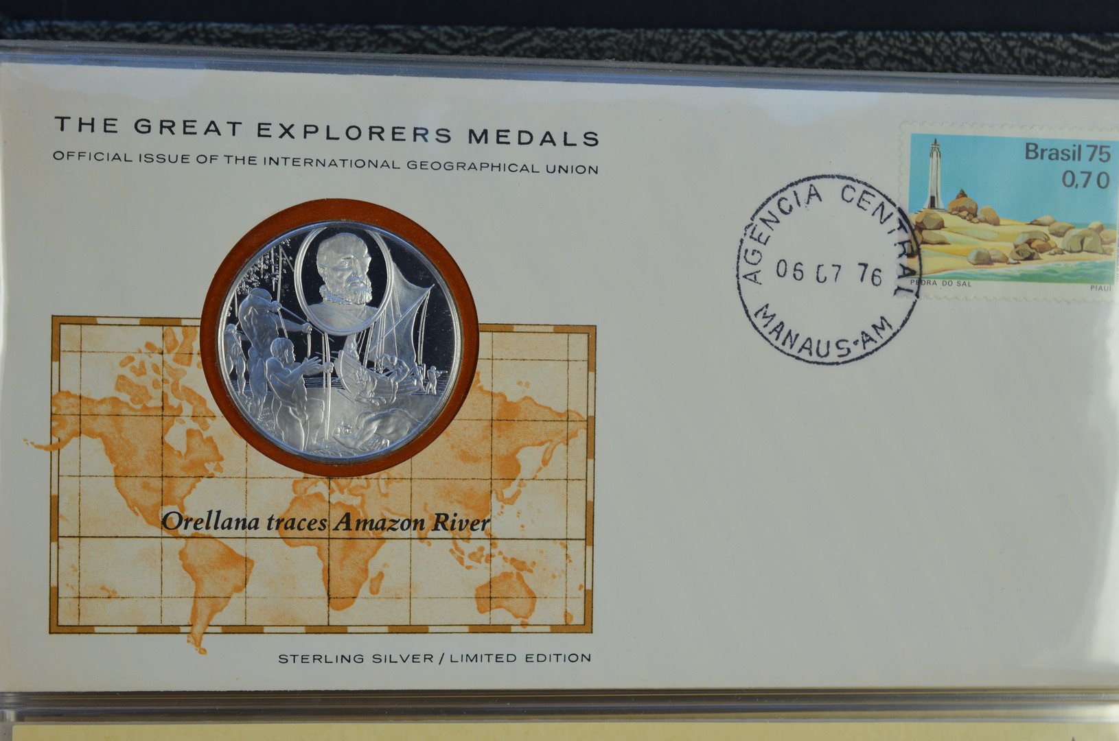 WERELD, 2 albums 'De grote ontdekkingsreizigers penningen', waarin 50 zilveren penningen