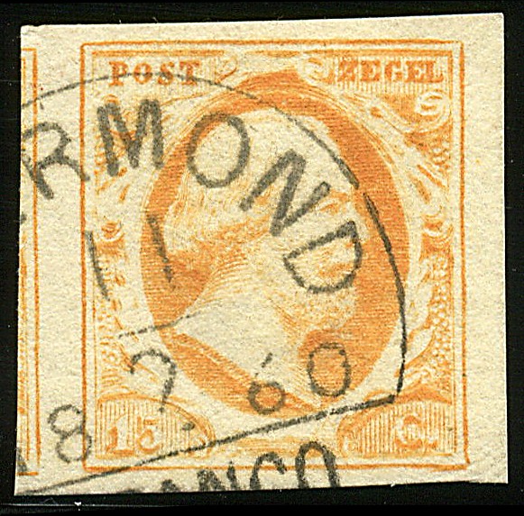 3c, pos. 75. Breed tot zeer breed gerande prachtzegel