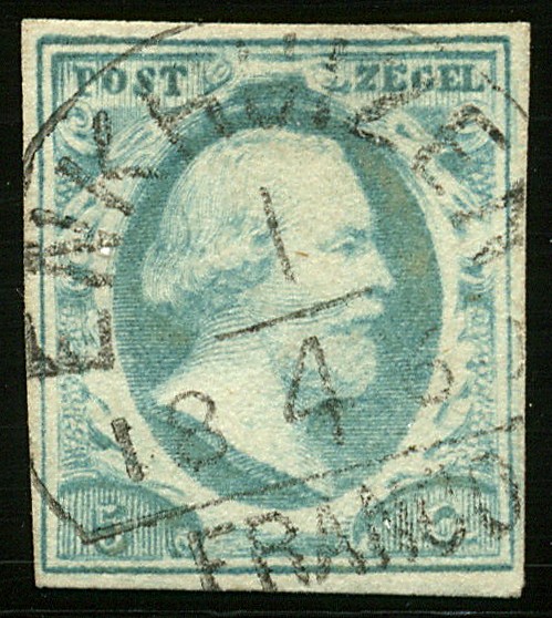 ENKHUIZEN C (EY.R) op 5 cent nr. 1n-Pl.IV-80. Wat smal gerande zegel met lichte, volledige en goed leesbare afst. van 1-4-1860 van dit op deze zegel zeldzame stempel