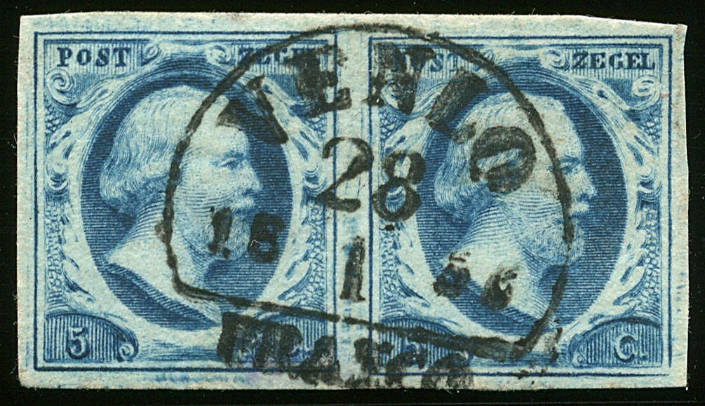 VENLO B (EY.50) op 5 cent nr. 1i-Pl.III-52/53. Prachtpaar met ideale afst.