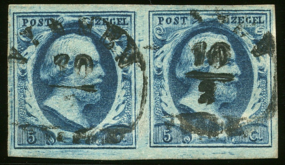 VIANEN A (EY.300) op 5 cent nr. 1i-Pl.III-79/80. Prachtpaar met op elke zegel een volledige, als gebruikelijk iets gevlekte afst.