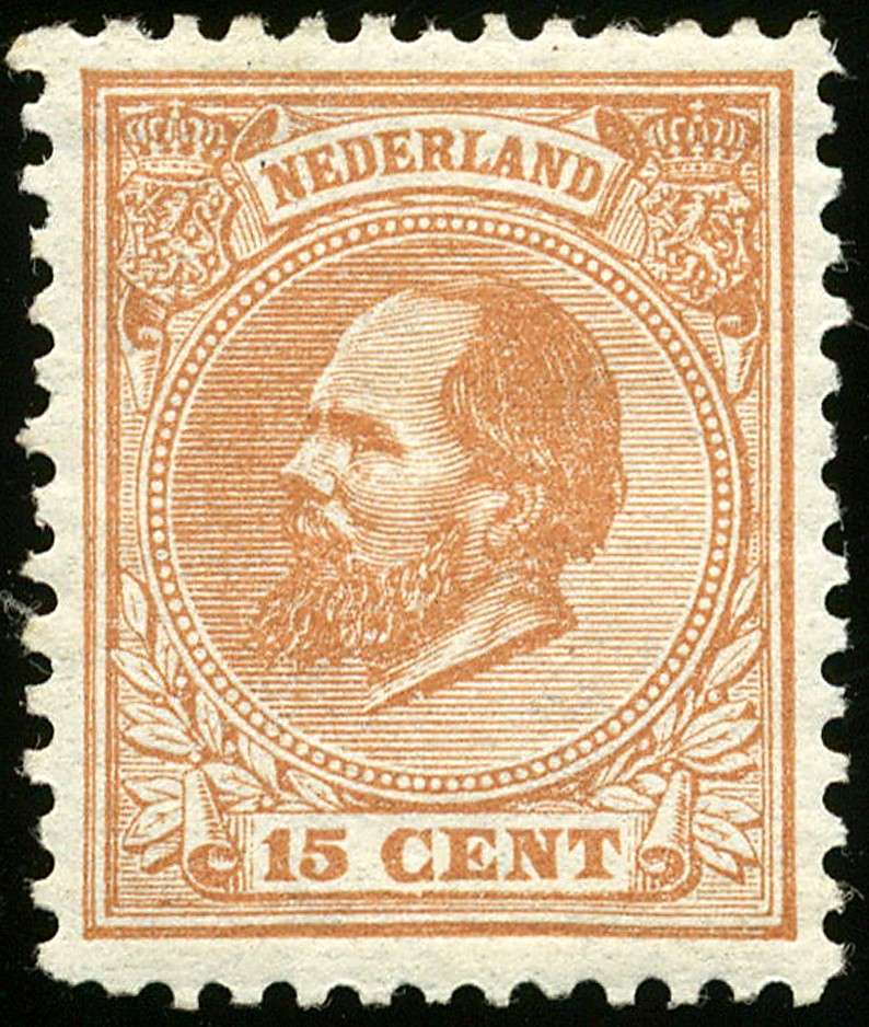 23H, 15 CENT ORANJEBRUIN, KT.12½ X 12 GR.G., POSTFRIS PRACHTEX. MET CERT. VLEEMING (2016) € 5000