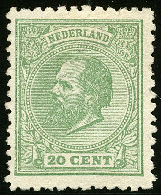 24E, 20 cent groen, Kt.11½ x 12 kl.g., ongebruikt prachtex. zonder gom