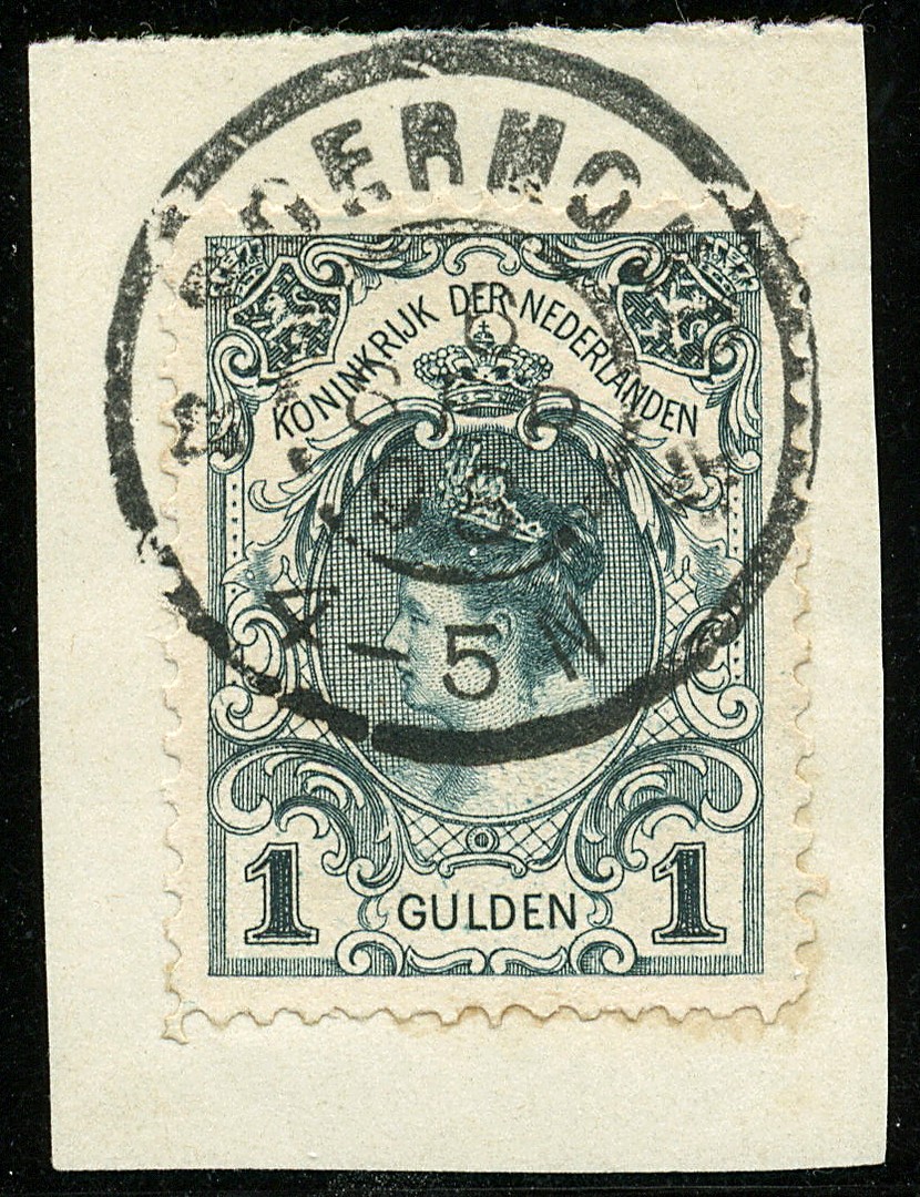 49, Kroningsgulden, prachtex. op briefstukje met eerste dag-afstempeling Roermond 6-9-1898, cert. NBFV (1974) € 680