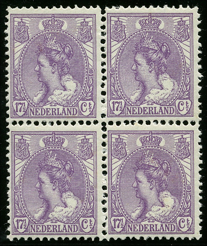 66, 17½ cent violet, postfris blok van vier met cert. Muis (2008) € 540