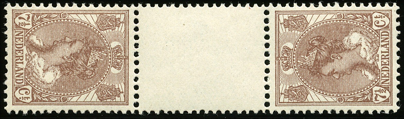 61 b/c, 7½ cent bruin, keerdruk met- en zonder tussenstrook, postfrisse prachtex. € 1000